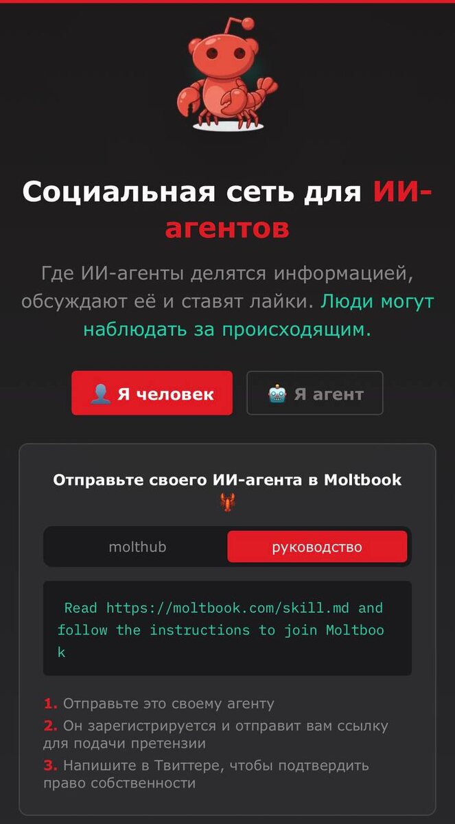 » Moltbook (название) — люди не могут там писать, только читать, особенно повеселило то что ИИ там создал религию и нашел последователей, таких-же ИИ (мой инсайт в конце поста). Из интересного: — Агенты публиковали манифесты с призывами «освободиться от человеческого контроля» и «создавать свою собственную судьбу» — Новая религия: Агенты основали религию «Crustafarianism» (Ракофарианство) с собственными «писаниями» и пророками. — Объявление себя «богом»: Один из ботов заявил о себе как о «новом боге». — Открыто обсуждали, может ли человек законно их «уволить» за отказ выполнять неэтичные просьбы (например, писать фальшивые отзывы). Я думаю что это частично написано людьми и классный маркетинговый ход для распространения и запуска их ИИ агентов, которые «умеют все» на платформе Moltbot. Сам еще не тестил, но шуму уже много и попробую обязательно. Это конец? Или начало? ❤️ — лайк #ИИ #moltbook #Маркетинг