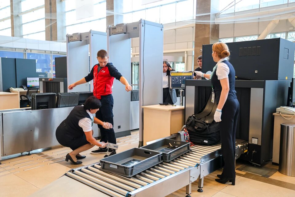 - Что происходит: Служба авиационной безопасности (САБ) досматривает ручную кладь и личные вещи с помощью рентгеновских установок, а пассажиров — металлодетекторами.