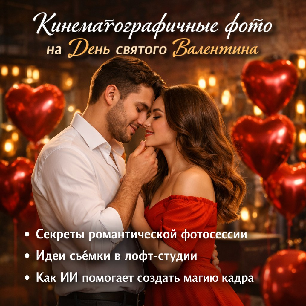 Привет! Представьте: романтическая фотосессия для Дня святого Валентина, где ваша пара позирует в стильном лофте, окруженная воздушными шарами в форме сердец. Мягкий свет, уютные диваны, бокалы шампанского – все это выглядит как кадр из голливудского ромкома. А создать такую ультрареалистичную кинематографичную картинку можно за минуты с помощью ИИ. Забудьте о дорогих студиях и фотографах! В этой статье я расскажу, как генерировать AI-фотосессии пары на 14 февраля шаг за шагом. Мы разберем лучшие нейросети для фото, готовый промт для романтических сцен и сайт aihere.ru – настоящий помощник для новичков в ИИ-генерации изображений. Создайте идеальную сцену: роскошный лофт с кирпичными стенами, гирляндами, шарами-сердцами, парой в объятиях. Используйте aihere.ru или любую нейросеть. Результат: фото, которое выглядит как снято Canon EOS в студии за 50 000 рублей. В эпоху нейросетей создание реалистичных фото пары стало проще простого. Ультрареалистичные ИИ-изображения с кинематографичным
