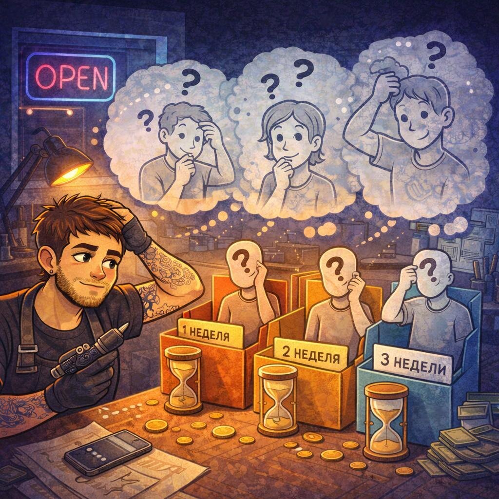 ? Ты всё сделал правильно. Выслушал. Предложил идею. Нарисовал эскиз. Объяснил по цене. Клиент сказал: «Мне нравится, я подумаю» — и пропал. Неделя тишины. Вторая. На третьей ты уже ловишь себя на мысли: это я плохо объяснил или люди просто боятся решиться? Чаще всего вторая ситуация. В 2026 клиенты думают долго не потому, что им «не зашло». А потому что татуировка перестала быть импульсной покупкой. Это деньги. Это тело. Это ответственность. И на фоне нестабильности люди жмут паузу на всём серьёзном. Что важно понять мастеру — долгое решение не равно отказ. Проблема начинается, когда мастер: — держит слот «на всякий случай» — эмоционально привязывается к каждому «почти клиенту» — начинает демпинговать или догонять сообщениями — злится и выгорает в ожидании ответа Рабочая позиция другая. Ты не ждёшь. Ты ставишь правила. Чёткие условия бронирования. Срок действия эскиза. Понятная логика: когда клиент готов — ты открыт. Когда не готов — ты живёшь дальше и работаешь с теми, кто уже реш