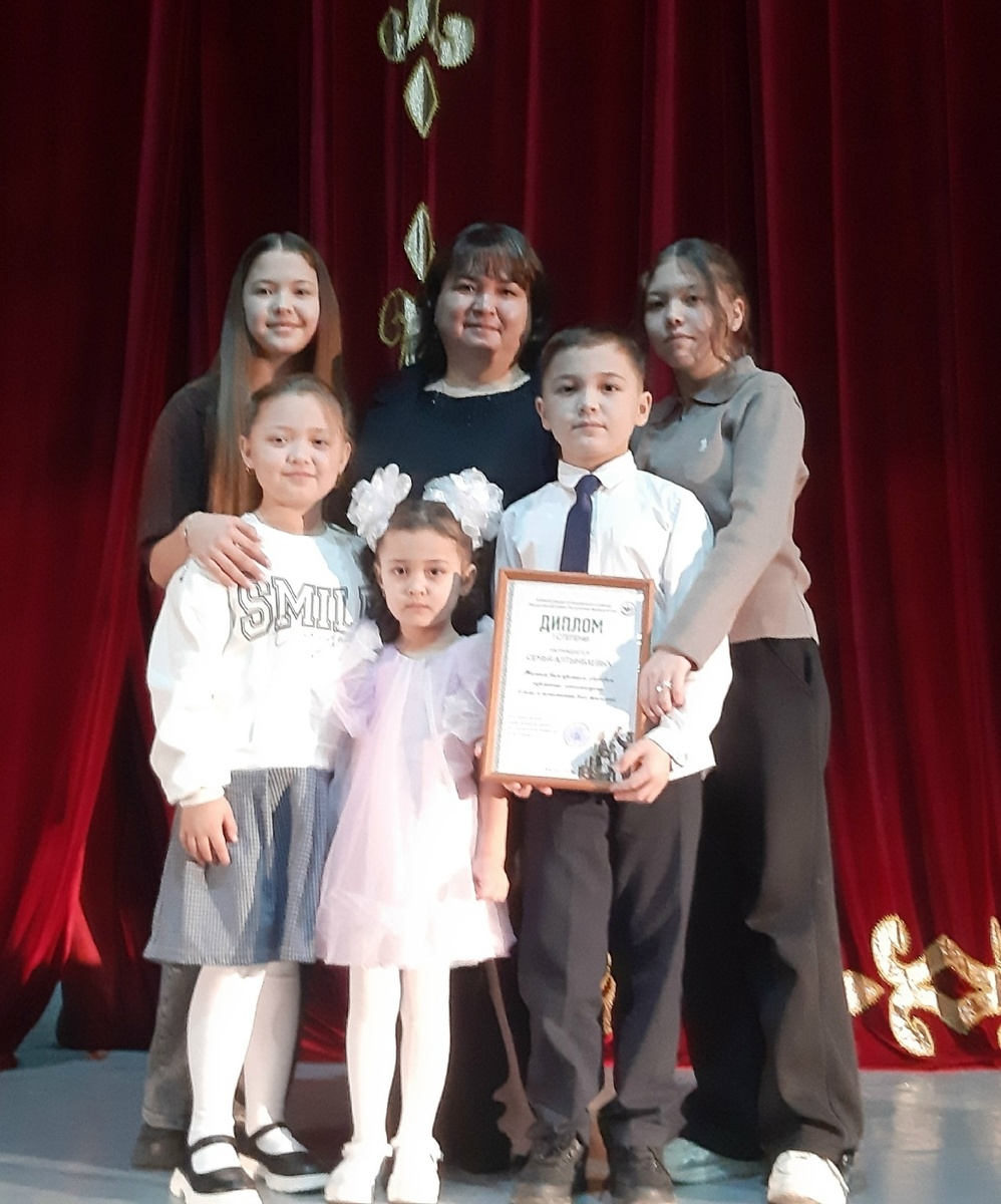 В Мелеузовском районе немало семей, которые вызывают восхищение, вдохновляют и служат примером для подрастающего поколения Именно такие семьи и гости торжественного мероприятия, посвящённого Году народного единства России и Году большой и дружной семьи Республики Башкортостан, собрались 6 февраля в Городском Дворце культуры. Здесь состоялось чествование финалистов муниципального этапа республиканского конкурса под названием «Башкирская образцовая семья». Семья Алтынбаевых, под чутким руководством воспитателя детского сада №3 «Мечта» Вахитовой Э. А., заняла почётное первое место! Мама Минигуль Маратовна трудится воспитателем, а папа Али Анварович является участником специальной военной операции. В их семье воспитываются пятеро детей: четверо старших посещали детский сад №3 «Мечта» (заведующий — Дмитриева З. Ф.), а младшая Адэлия с радостью ходит в старшую группу. Семья Алтынбаевых — это образец заботы, уважения, поддержки и взаимопомощи. На торжество пришли родные: бабушка, дедушка и дя
