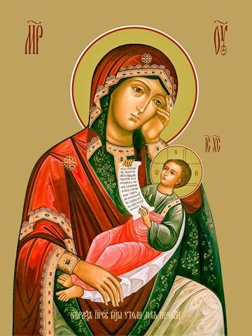 На иконе Богородица изображена с чуть склоненной головой, приложив к ней руку. Этот жест говорит больше любых слов: Она не просто слышит наши молитвы. Она прислушивается к ним, со-страдает нам. Она та, у Кого «за всех нас голова болит».
