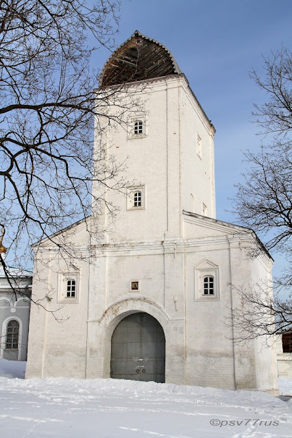 Водовзводная башня построена во второй половине XVII в. В 1675 г. мастер Богдан Пучин установил в башне водовзводный механизм, подававший воду в Государев двор. Второе назначение башни — проездные ворота в Вознесенский сад и село Дьяково. Башня является частью Государева двора, ансамбль которого сформировался в годы правления царя Алексея Михайловича. Сооружение было возведено для обеспечения водой царской резиденции, а также служило проездными воротами из Коломенского в соседнее село Дьяково. Для строительства использовался красный большемерный кирпич. Под башней располагался источник. С помощью специальных механизмов (насоса или системы черпаков) воду поднимали на верхний уровень, где размещалась огромная бочка. Оттуда по верхним деревянным трубам она доставлялась во Дворец и другие постройки Государева двора. Верхняя часть башни как будто обыгрывает свою функцию. Перекрытия яруса, где находилась бочка, тоже имеют бочкообразную форму. Сейчас в башне находится экспозиция «Государево в