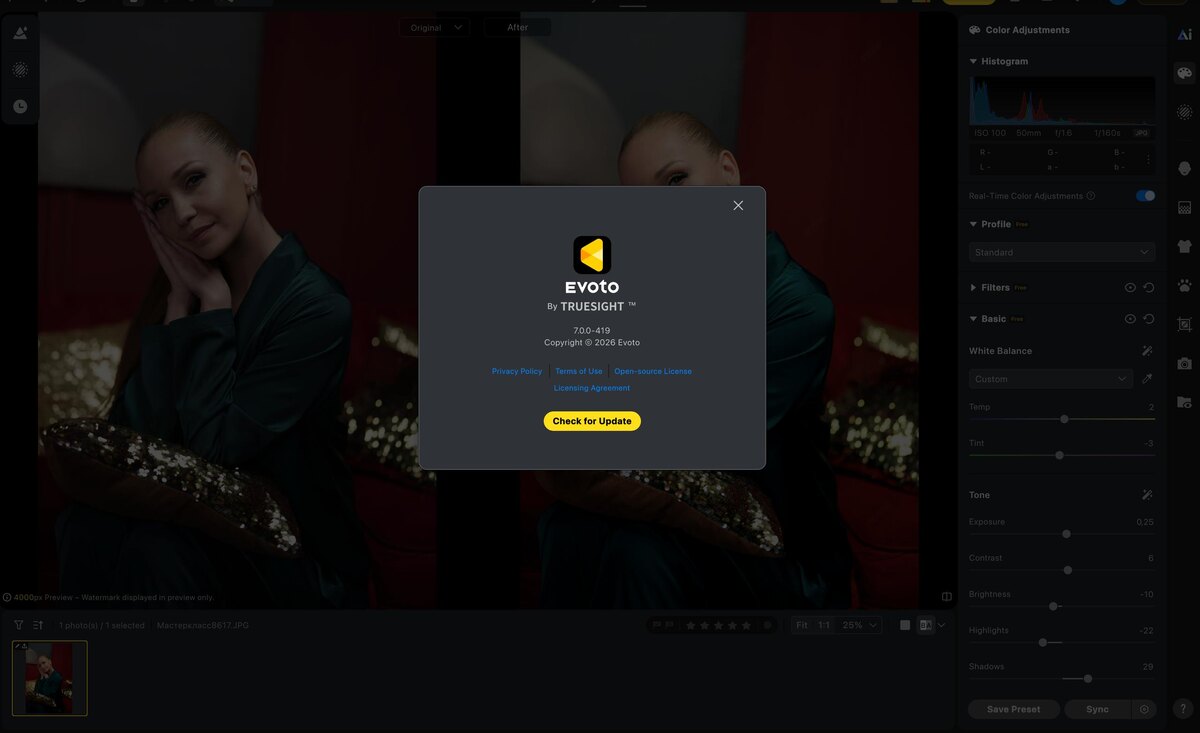 Вышло обновление лучшего ИИ комбайна для работы с фото Evoto AI 7.0.0-419 (полностью заменяет все плагины Retouch4me, Lightroom, Photoshop и