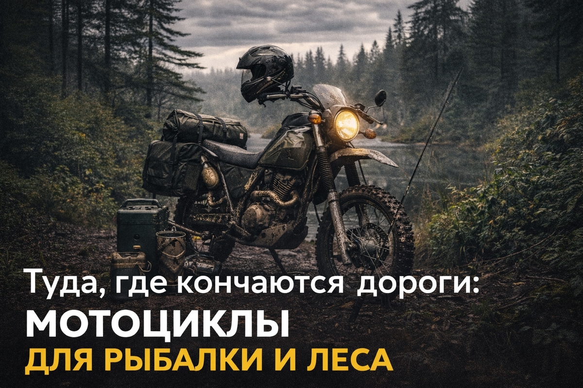 Асфальт заканчивается быстро. Дальше — колея, песок, лес и тишина. Именно там прячутся лучшие места для рыбалки, грибов и отдыха от людей. Но добраться туда на машине получается не всегда, а пешком — долго и тяжело. Для таких поездок нужен мотоцикл особого типа. Не быстрый и не красивый, а надёжный, простой и готовый к грязи. Именно на таких байках ездят те, кто выбирает лес вместо трассы и тишину вместо комфорта. О том, какие мотоциклы подходят для рыбалки и лесных дорог — расскажем дальше. Лес не любит спешку и показуху. Он принимает только тех, кто готов к грязи, тишине и неожиданностям. Поэтому и мотоциклы здесь нужны особенные — не глянцевые, не мощные на бумаге, а надёжные, простые и честные. Рыбаки, грибники и те, кто уезжает туда, где нет связи, давно знают: правильный мотоцикл может спасти поездку, а неправильный — испортить всё. Городские байки и туристы рассчитаны на ровное покрытие. В лесу их слабые места проявляются сразу: Одна глубокая колея или корень — и поездка заканч