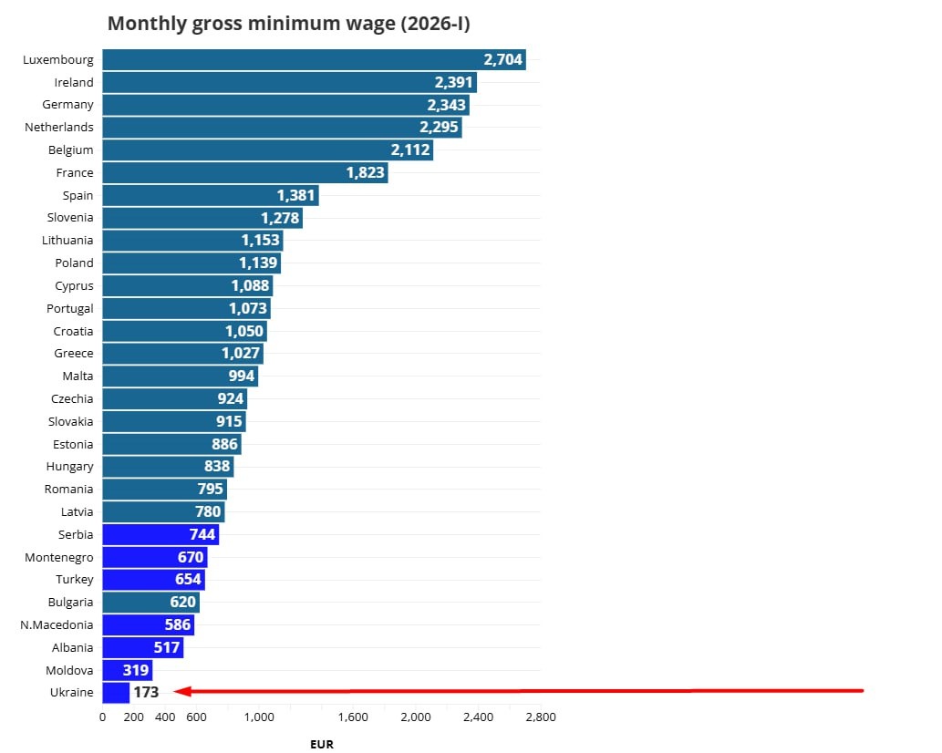 🇺🇦 Украина заняла последнюю строчку в списке стран по минимальной оплате труда