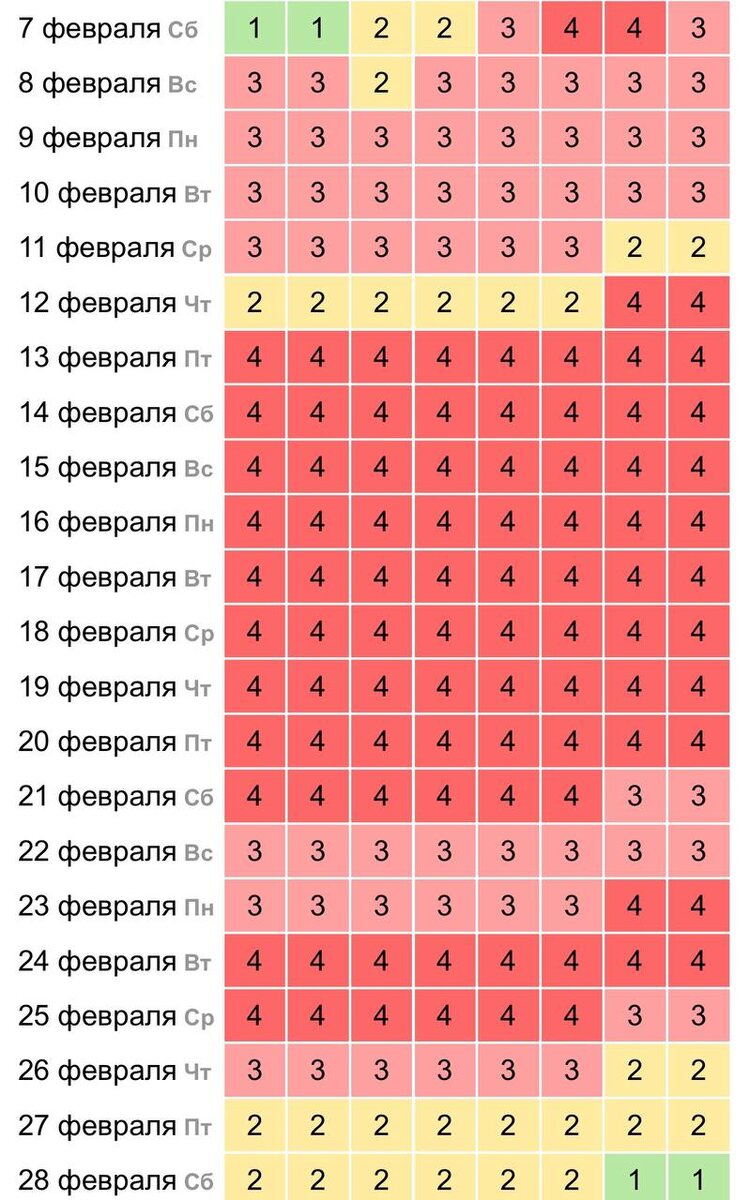 С 7 по 11 февраля ожидается магнитная буря умеренной силы — 3 балла. Затем последует короткий перерыв: с вечера 11 февраля до вечера 12 февраля геомагнитная обстановка немного успокоится. Но это не надолго: начиная с 12 февраля, бури усилятся до 4 баллов и будут держаться почти две недели — ориентировочно до 26 февраля. Подписаться | Прислать новость | Дать «буст» | Мы в MAX