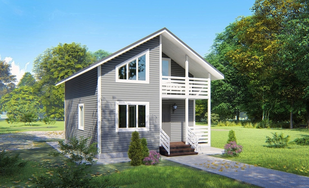 Каркасный дом полтора этажа, размер дома 8х6 м, 3 спальни, кухня-гостиная, большой санузел
