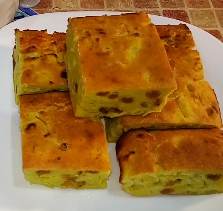 Всем Привет! Сегодня Мне захотелось чего-нибудь печёного и я вспомнила про этот кукурузный кекс без сахара. готовится он быстро и просто, всё как я люблю, без фанатизма! Мука в этом рецепте используется кукурузная. А она, как известно, богата клетчаткой. Кукурузная мука не рекомендуется людям с недостатком веса, а это значит, что с избытком этого самого веса, как раз можно и нужно! Кукурузная мука придаёт кексу сладковатый вкус и ярко жёлтый цвет. Я бы оценила его (кекс), как довольно интересный и вкусный. ПРИГОТОВЛЕНИЕ: 1. Подготовим все ингредиенты. Яблоки нарезать на не большие кусочки. Изюм хорошо помыть. Воду вскипятить. Муку просеять. Кефир заранее достать из холодильника, чтобы он был комнатной температуры. 2. Муку заварить кипятком. Для этого кипяток, который постоял 5 минут после закипания, добавляем в муку не большими порциями, постоянно перемешивая, получится типа крошки. 3. К мучной крошке добавляю кефир, соль, ваниль. яйца, разрыхлитель и хорошо перемешиваю. 4. В готовую