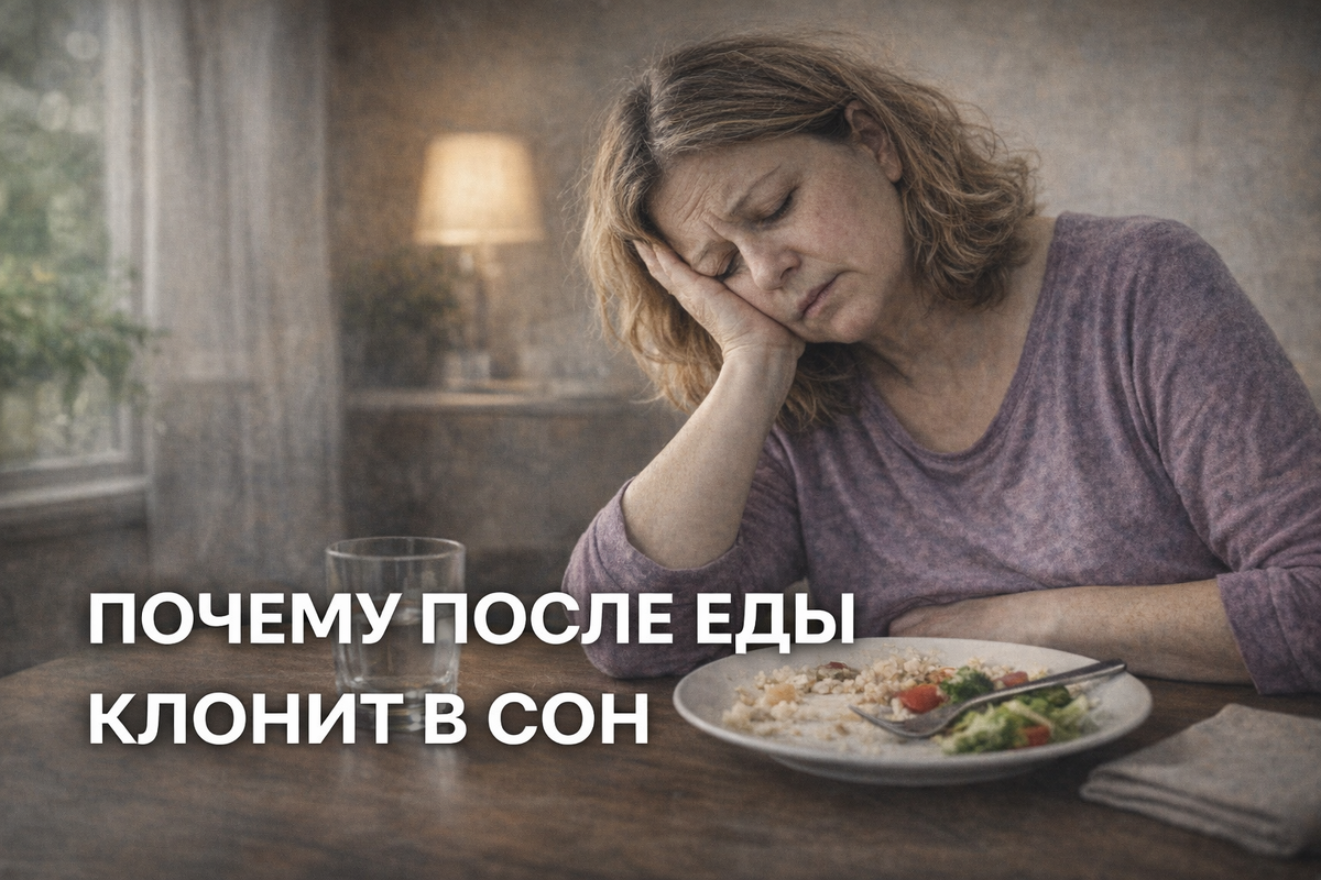 Знакомая ситуация: поел — и через 20–40 минут накрывает сонливость. Глаза слипаются, концентрация падает, хочется лечь или хотя бы «посидеть спокойно». Многие считают это нормой. Мол, поел — кровь «ушла к желудку», вот и тянет в сон. Частично это правда. Но если сонливость после еды выраженная и повторяется регулярно, особенно после 40–45 лет, — это уже сигнал обменных нарушений, а не просто сытость. Разберёмся, что именно происходит в организме. После приёма пищи: При здоровом обмене веществ это вызывает лёгкое расслабление, но не сильную сонливость. Человек остаётся бодрым и работоспособным. Если же после еды буквально «вырубает» — значит, какой-то механизм работает неправильно. Самая частая причина сонливости после еды — быстрое повышение глюкозы, а затем её резкое падение. Это происходит, когда в пище много: Инсулин выбрасывается резко, сахар сначала подскакивает, а потом падает ниже комфортного уровня. Мозг воспринимает это как сигнал усталости — появляется сонливость. После 40–45