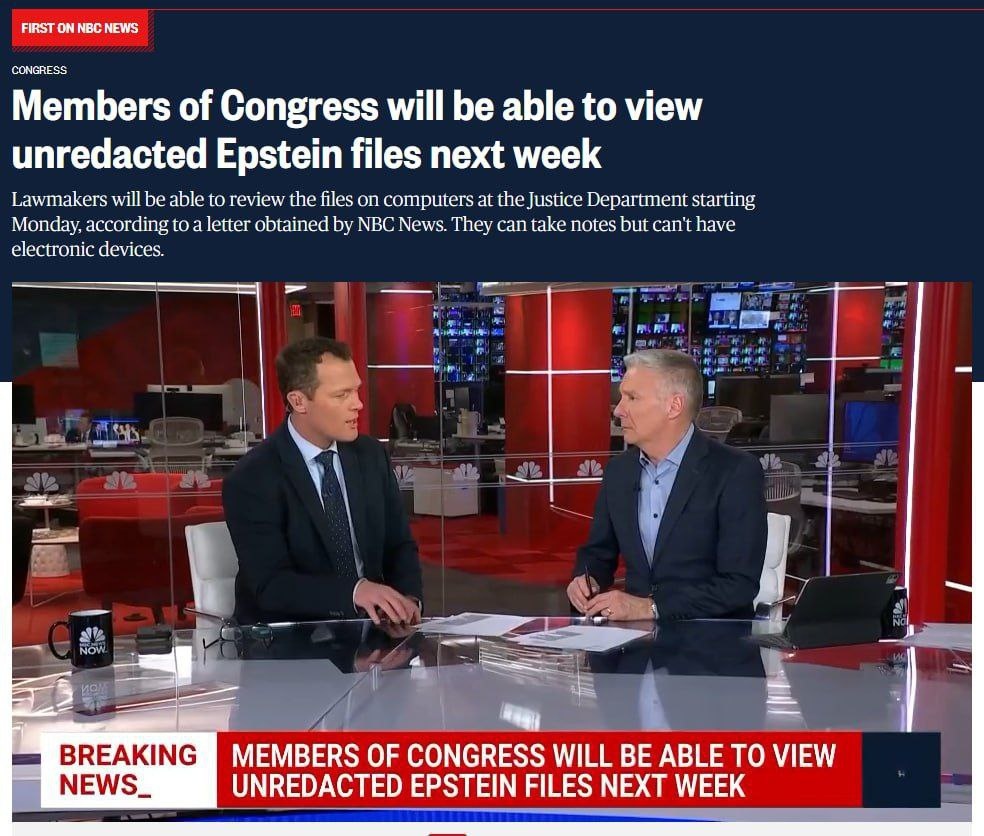 ❗️Члены Конгресса США получат полный доступ к неотредактированным файлам Эпштейна начиная со следующего понедельника