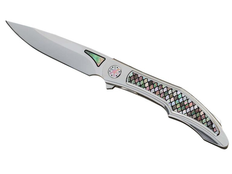Если творение Холлербаха смотрит в будущее, то Mini Tritan Эяля Ландсмана ныряет в океанские глубины прошлого. Клинок длиной 8,9 см из зеркально отполированной стали RWL-34 — это просто изысканная увертюра к главному симфоническому действу: рукояти.