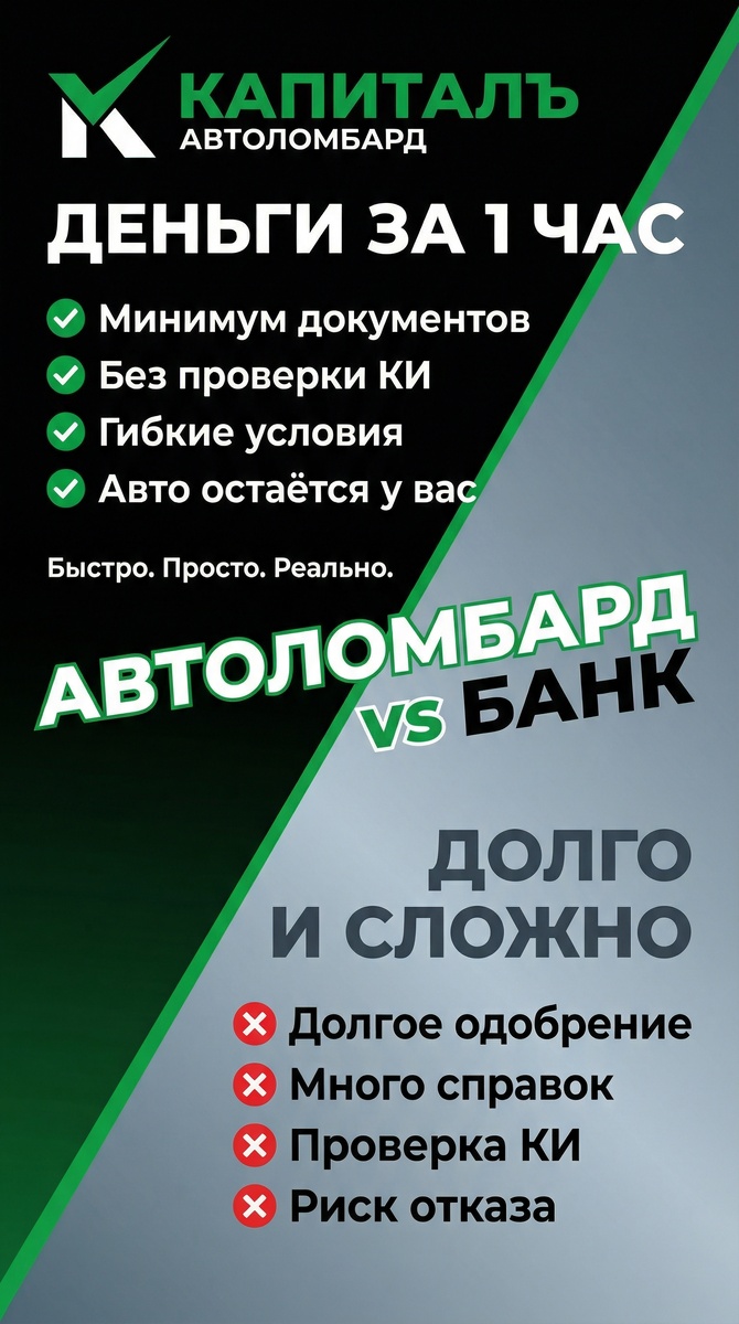 Многие думают, что автоломбард — крайняя мера. На самом деле это удобный финансовый инструмент, который помогает быстро получить деньги и сохранить автомобиль. 1️⃣ Как работает автоломбард Принесли авто и документы Оценка машины Получение денег под залог 2️⃣ Когда стоит обращаться Срочно нужны деньги Нет альтернатив (банк, рассрочка) Планируете временный займ 3️⃣ Мифы и реальность «Авто сразу заберут» → можно пользоваться машиной «Обманут» → прозрачные условия и договор Главное — понимать условия и не спешить. Автоломбард может быть безопасным и выгодным решением. 💡 Хотите проверить, сколько можно получить за свой автомобиль? Оставьте заявку.