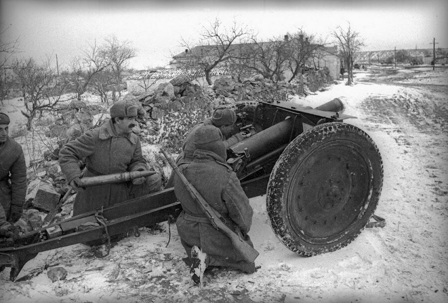 В соответствии с утвержденным 5 апреля 1941 года штатом советская стрелковая дивизия основного состава включала три стрелковых и два артиллерийских полка. Собственно дивизионная артиллерия представляла собой легкий артиллерийский полк из двух дивизионов по восемь 76,2-мм пушек каждый. Непосредственную огневую поддержку действий стрелковых подразделений осуществляли артиллерийские и минометные батареи в составе стрелковых полков и батальонов. Если кто еще не понял – эти артиллеристы стреляли не с позиций в ближнем тылу, а находясь непосредственно в рядах пехоты. И зачастую им было гораздо труднее, чем пехотинцам с легким стрелковым вооружением.