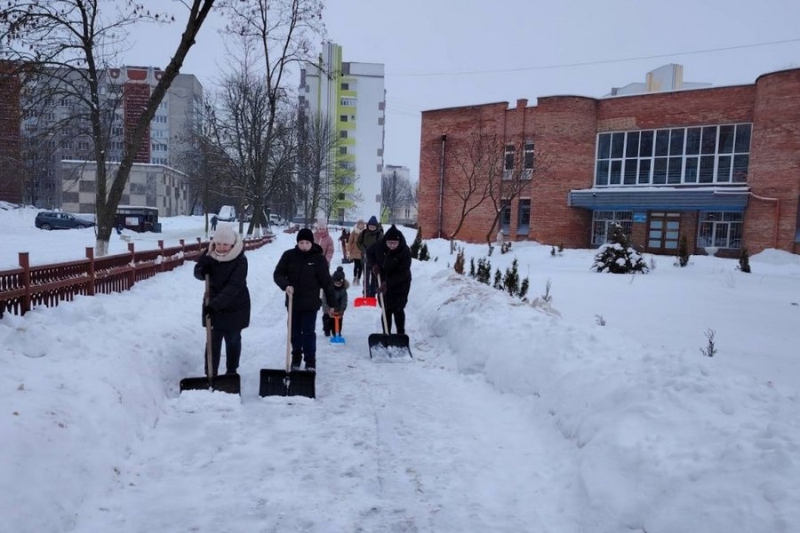 В Гомеле педагоги, дети и родители СШ № 57 расчистили снег