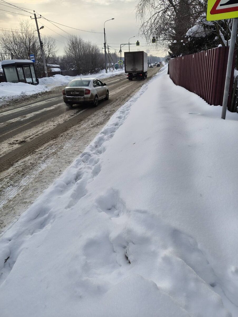 Вот как жителям Новинок попасть на автобусную остановку ? Остаётся только проезжая часть , что очень опасно!