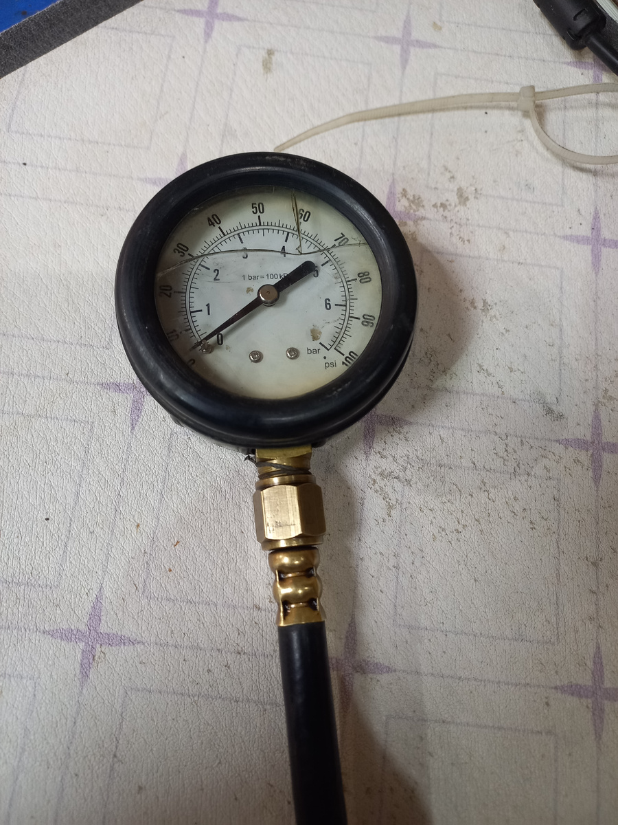 включил зажигание. Стрелочка манометра лихо рванула вверх, это уже хорошо, давление в системе хорошее, выключили зажигание, снова включили, стрелка манометра замерла на 3.9, хороший результат!