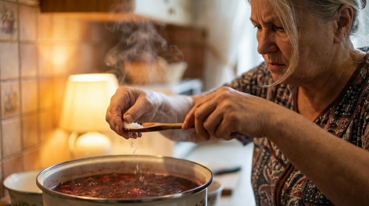 Я солила борщ, как обычно. Бросила ложку, помешала. Потом засомневалась. Пробовать не стала – у меня давно привычка: не пробую, пока не готово. Взяла ещё половину ложки, добавила. На всякий случай.