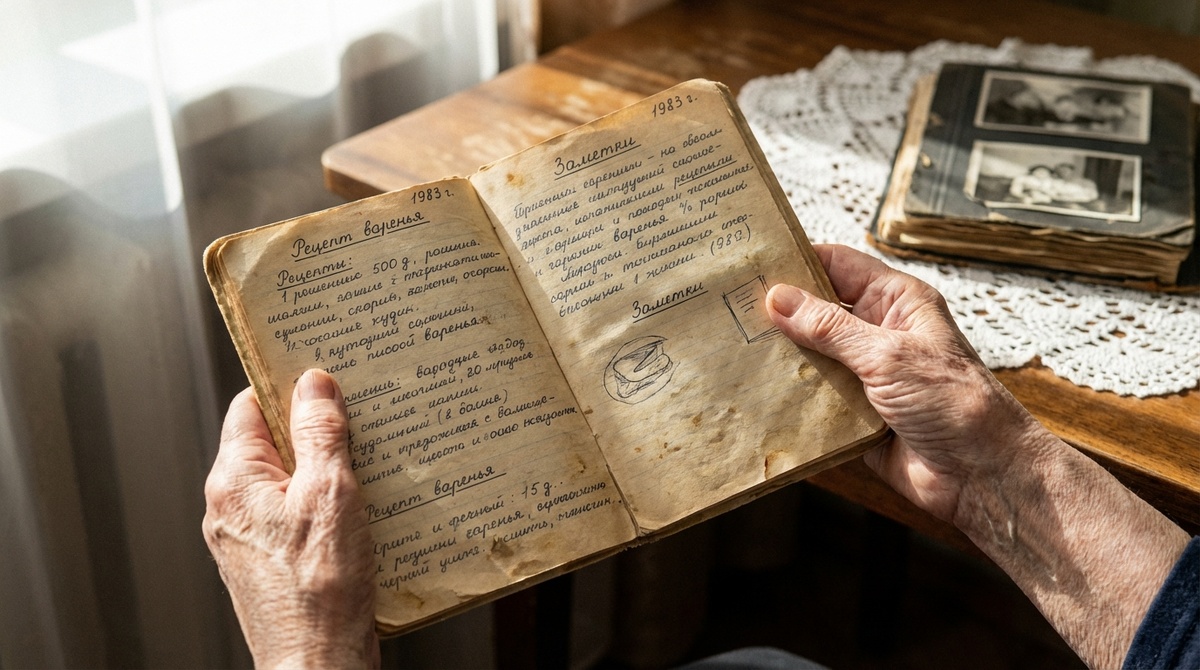 Вчера решила разобрать антресоли. Знаете, как это бывает: полезла за банкой для огурцов, а пропала на три часа. В дальнем углу, в коробке из-под чешского хрусталя, я нашла её. Мамину общую тетрадь. 48 листов, обложка из клеенки, цена — 44 копейки. Я думала, там только рецепты. «Наполеон», «Мишка на севере», засолка капусты... Но между страниц с пропорциями сахара и уксуса я нашла то, что заставило меня сесть прямо на пол и заплакать. Там были мамины мысли. Не для публики, а для себя. Своего рода «правила жизни» советской жены. «Терпи, если любишь. Ломай, если пусто»