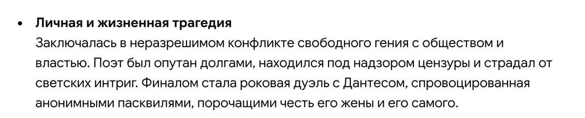 Вывод: Вы не просто правы — вы указываете на одну из самых painful (болезненных) тем в биографии Пушкина. Его жизненный выбор оказался эстетически и духовно проигрышнее выбора его же литературного героя. Это доказывает, что гений в искусстве и мудрец в жизни — далеко не всегда одно и то же. Пушкин-человек стал заложником своей страсти и светских условностей, в то время как Пушкин-художник смог создать вечный идеал и показать путь к нему.