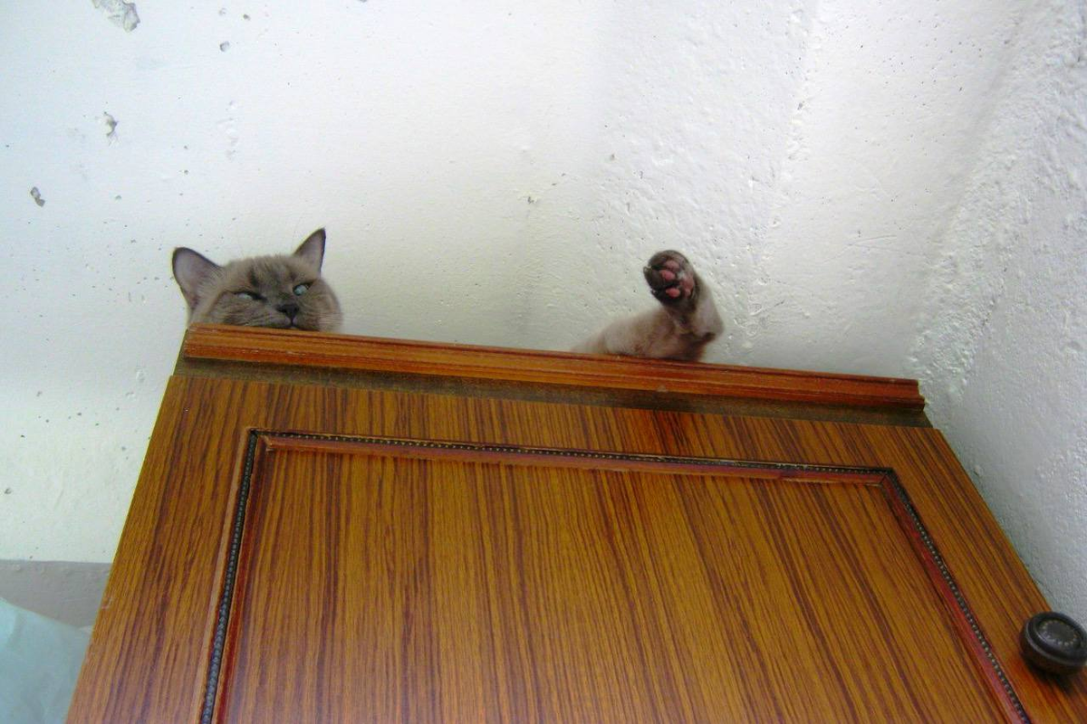 Вы не понимаете: как он туда забрался? Зачем? Там неудобно. Пыльно. Жарко. Внизу есть мягкая лежанка. Удобный диван. Но кот выбирает твёрдую поверхность шкафа. Три метра над полом. Сидит часами. Наблюдает. Как будто на троне. Что в высоте такого привлекательного?