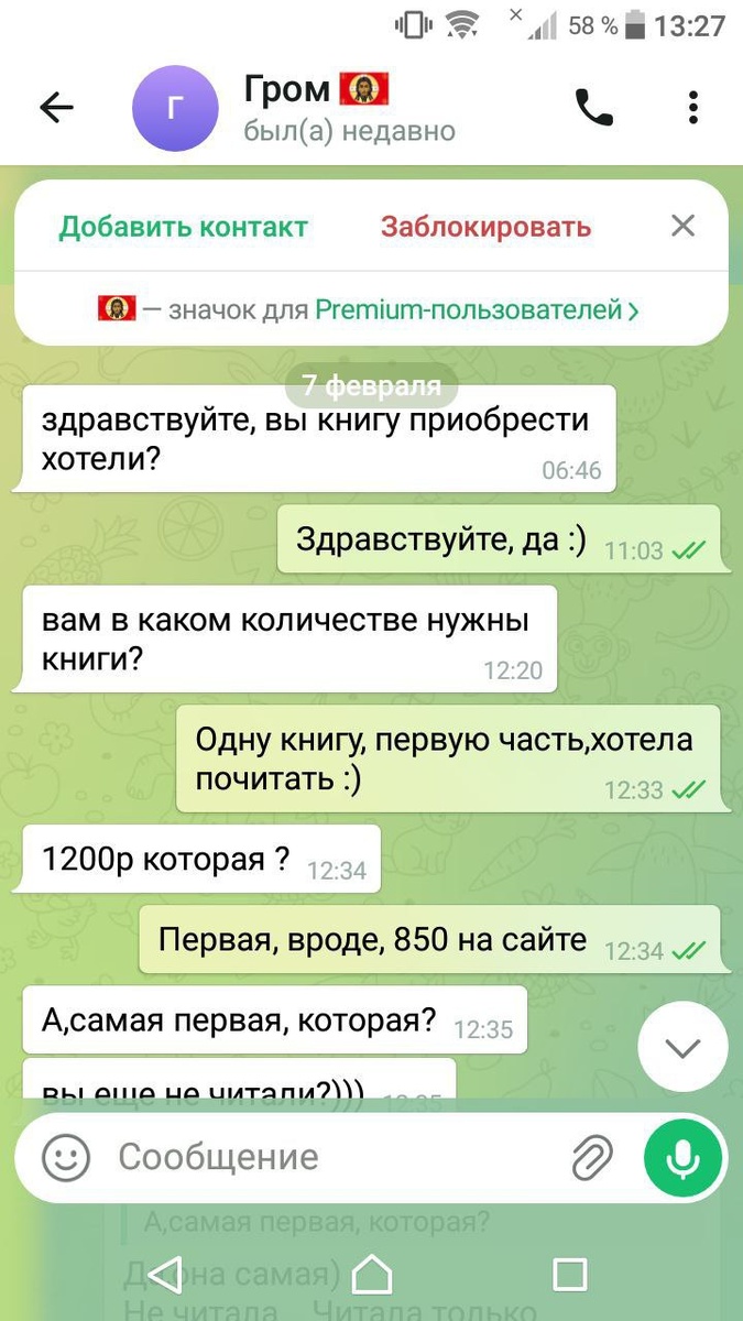 Подписчице написал какой-то мурзилка, который представился мной и пытался получить деньги за книгу