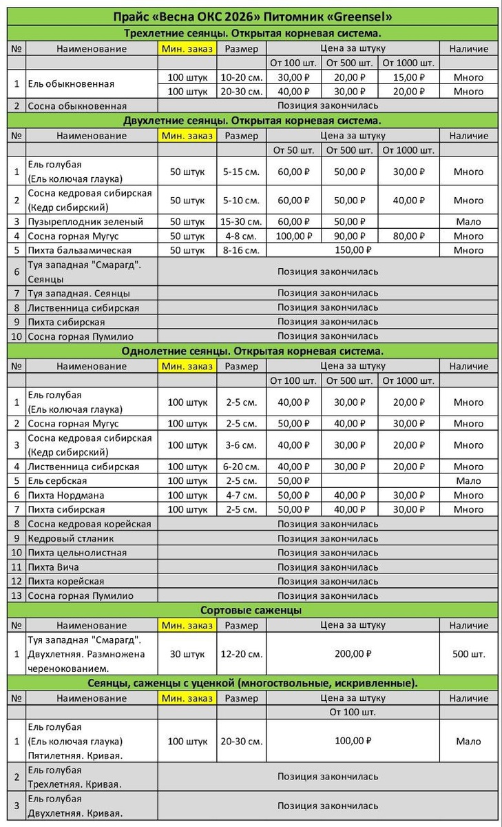 ❌Закончились: 1) Сеянцы туи западной 2) Сеянцы туи западной смарагд 3) Ель голубая. 3года (уценка) 👉Напоминаем, к апрелю, к началу отправок, обычно в прайсе мало, что остается Если планируете заказ, не тяните, оформляйте бронь вовремя!