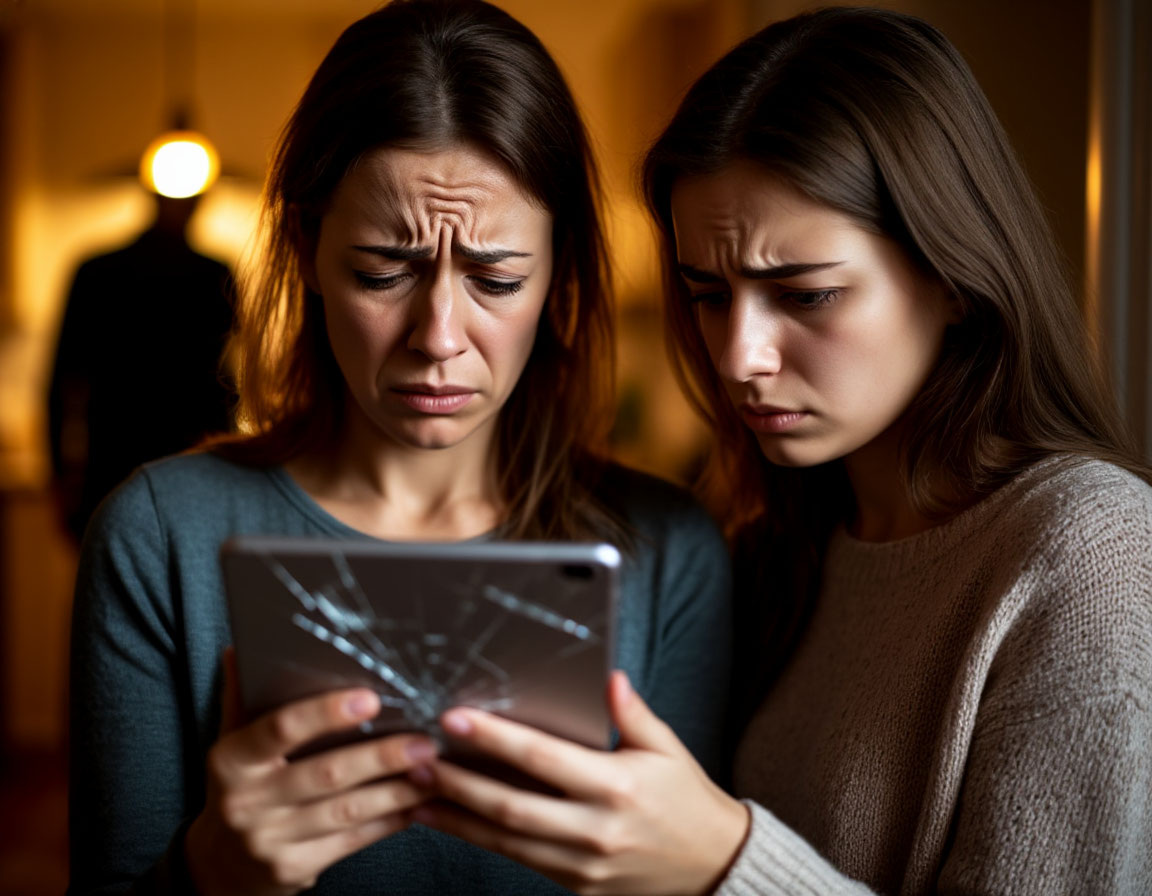 Теперь мы сидели втроём на кухне. Разбитый планшет лежал на столе между нами, как немой обвинитель. Ксюша обхватила чашку с чаем, которую я молча поставила перед ней. Слёзы всё ещё стекали по её щекам.