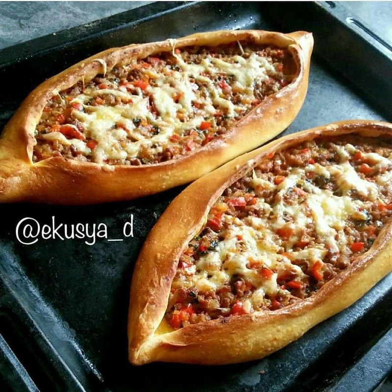 🥣♥️ Пиде Кол-во: 2шт Тесто: ☆мука 250гр ☆молоко 150гр ☆оливковое масло 3ст.л. ☆сухие дрожжи 1ч.л. ☆соль 1ч.л. ☆сахар 1/2ч.л. Начинка: ☆мясной фарш 300гр ☆лук 1бол.шт ☆красный перец 1шт ☆зеленый перец 1шт ☆томатная паста 2ст.л. ☆зелень (укроп,петрушка) ☆чеснок 2зуб ☆сыр ☆соль, перец ☆масло для жарки Делаем тесто ➡️ в теплое молоко положите дрожжи, соль и сахар. Перемешайте и оставьте на 5 минут, чтоб дрожжи ожили. Затем добавьте масло и налейте всю смемь в муку и замесите тесто. Тесто оставьте в теплом месте, чтоб оно поднилось. Делаем начинку ➡️ лук порежте мелкими кубиками и жарте на масле, как он начнет менять цвет добавьте туда фарш, красный и зеленый перец, чеснок. Все перемешайте и посолите, поперчите. Долго жарить не надо, как вся вода выпарится добавьте томат и прожарте минуту и выключите. Затем добавьт...