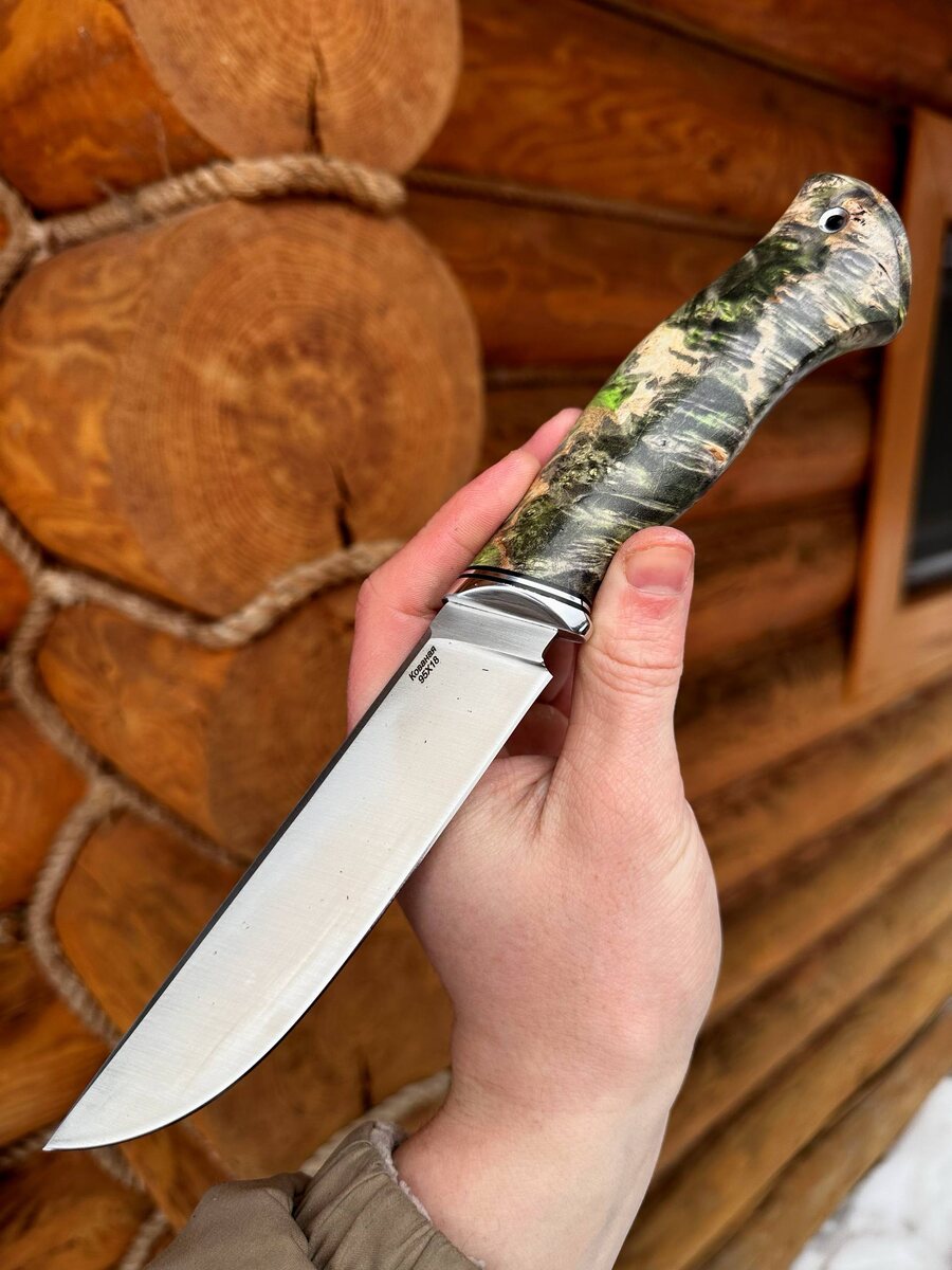 ! 🔪 Клинок из отечественной нержавеющей стали 95х18 — отлично держит заточку и не боится влаги. Каждая сталь проходит тройной контроль качества и доводится до идеала. 🌲 Рукоять из капа зелёного клёна — уникальный рисунок дерева, приятный хват, устойчива к влаге и перепадам температур. Каждый нож не похож на другой! ✂️ Заточка — «в бритву», твёрдость 58 HRC: справится как с разделкой трофея, так и с работой по лагерю или на рыбалке. 🧳 В комплекте — ножны из натуральной кожи. Для максимальной надёжности и презентабельности можем изготовить формованные ножны (+8.000 руб.). 💰 Цена — 9.724 руб. 🔥 Со скидкой — 8.265 руб. Выбирайте нож, который будет служить долгие годы! Для заказа: 🔹 Telegram — @Nazarklinokbot 🔹 WhatsApp/Viber: +7 910 134-38-31 #ножи #охота #кузницаНазарова #ручнаяработа #95х18 #охотничийнож #подарокмужчине #Nazarklinok