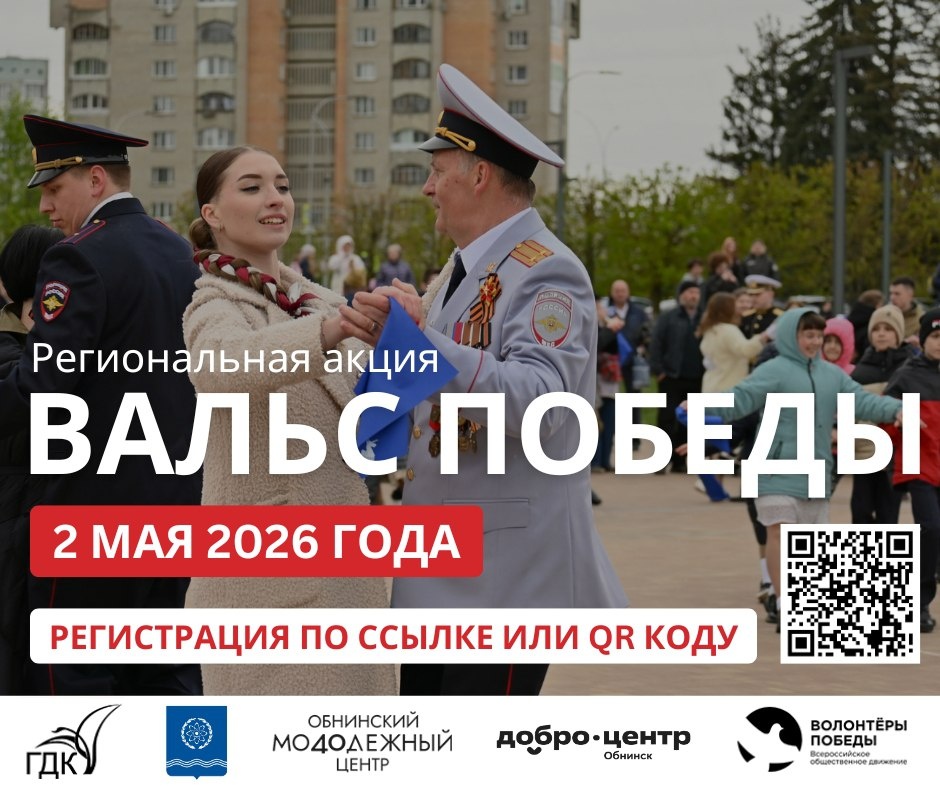 »! «Вальс Победы» – символ единства поколений, возможность выразить благодарность ветеранам и почтить память тех, кто отдал свою жизнь, защищая нашу Родину. В год 80-летия Великой Победы эта акция приобрела особое значение и масштаб. Под песню «Синий платочек» 200 пар кружились в вальсе на стадионе школы №16, 150 – на площади перед Домом учёных. В этом году к акции вновь могут присоединиться все желающие. Регистрация доступна по ссылке: https://clck.ru/3ReCks Даты репетиций будут объявлены позже. #молодёжьобнинска