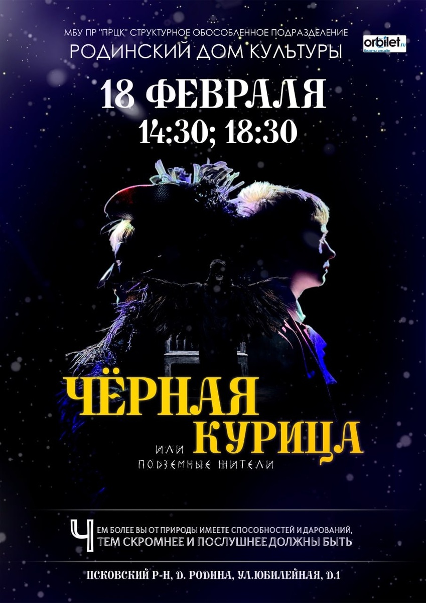 🎭 🌲 В рождественском Петербурге, в снежную ночь, мальчик Алёша сталкивается с тайной. Среди учеников пансиона, где царят правила и наказания, Алёше предстоит решить, что для него важнее: честность или соблазн. Спектакль показывает, как трудно маленькому мальчику сохранить себя, когда на пути появляются большие возможности. 📆 18 февраля состоятся два сеанса: в 14:30 и в 18:30. 📍 Псковский район, д. Родина, ул. Юбилейная, д.1. Оставайтесь с нами #НашаПсковскаяобласть