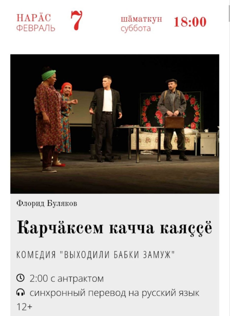 🎭 Мы идём на чувашский спектакль "Выходили бабки замуж" в Чувашский драматический театр им. К. Иванова, г. Чебоксары. Поснимать? Поделиться впечатлениями? #досугЦветиЧувашия