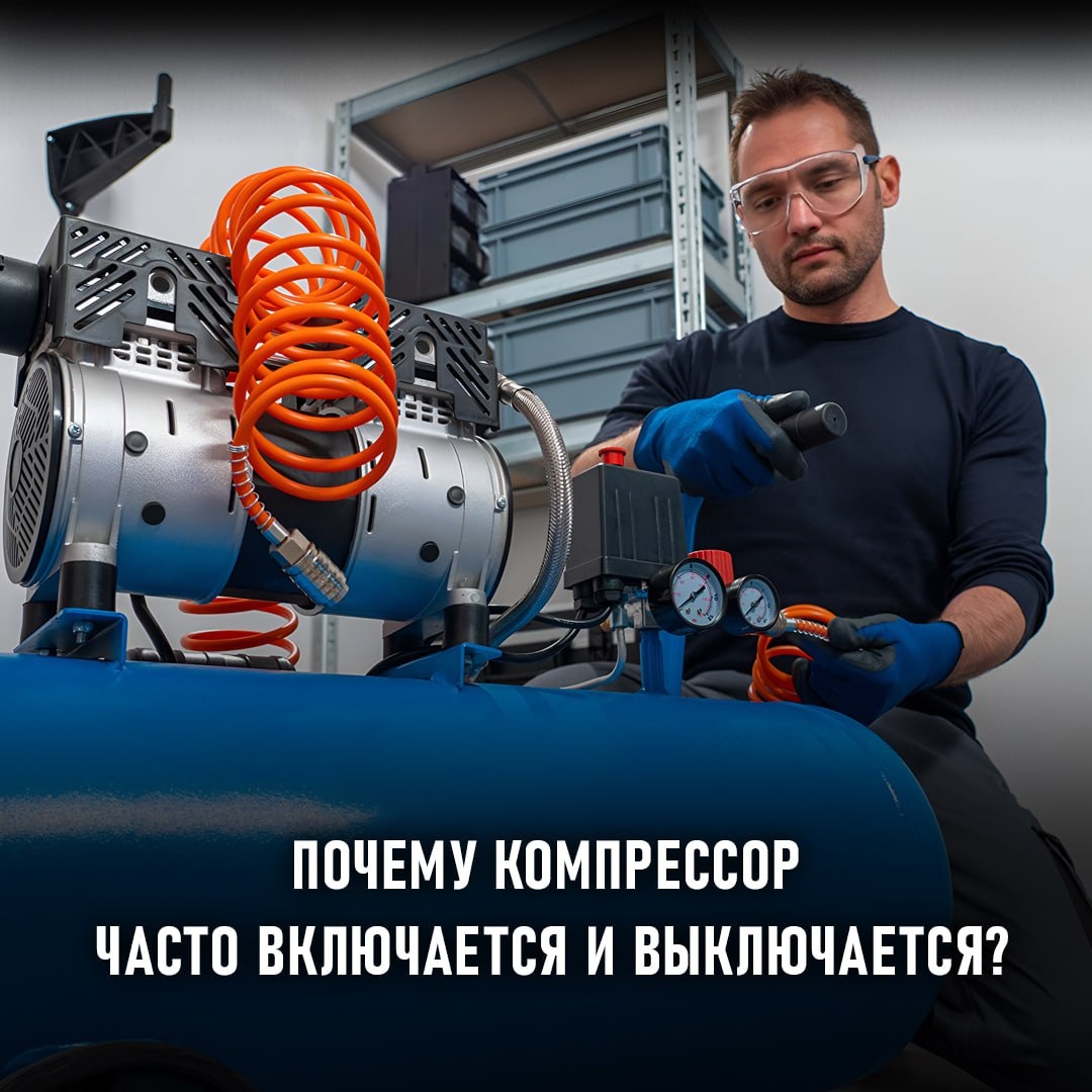 ? 💨 Напоминаем, что компрессор не должен работать постоянно. В нормальном режиме он накачивает ресивер до нужного давления, потом отключается и снова включается, когда давление падает. ❗️Если паузы между включениями становятся слишком короткими, компрессор почти не отдыхает – это уже сигнал, что в системе есть проблема. Назовём основные причины: ▪️Утечки воздуха – соединения, шланги или инструмент могут понемногу тратить воздух; ▪️Большой расход воздуха – инструмент потребляет больше, чем компрессор успевает накачать; ▪️Малый объём ресивера – давление падает слишком быстро при работе; ▪️Засорённые фильтры или ограничения в линии – компрессору сложнее набрать давление; ▪️Неправильно настроено реле давления – слишком узкий диапазон включения и отключения. Главное – понять, что частые включения и выключения не являются нормальным поведением компрессора. Такая нагрузка ускоряет износ двигателя и автоматики, поэтому нужно регулярно проверять состояние системы. ✔️ Самая простая провер