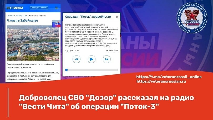 На радио «Вести Чита» в программе «Я живу в Забайкалье» прозвучал голос человека, для которого слова долг, честь и Родина, не абстракция, а прожитый путь.