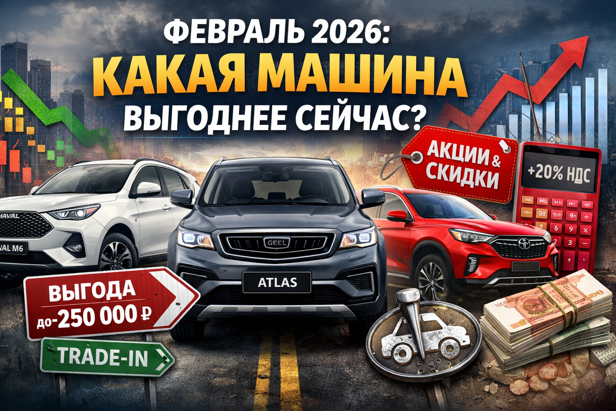 Февраль 2026 на российском авторынке — время, когда цены продолжают расти из-за утильсбора и НДС, но дилеры ещё держат акции и скидки на февральские поставки. Продажи в январе упали на 16 %, так что февраль может стать "окном" для выгодной покупки. Разбираем главные новинки и обновления февраля — от бюджетных кроссоверов до среднеразмерных "китайцев". Самая обсуждаемая новинка февраля — Haval M6 в свежем исполнении (facelift 2025–2026). Модель уже активно продаётся у дилеров, цены стартуют от 1 999 000 руб. (МТ, 1.5 л, 143 л.с., передний привод). Версия с DCT (робот) — от 2 299 000 руб.. Ключевые плюсы: Минусы: робот может "задумываться" в пробках, шумоизоляция средняя. Что купить сейчас? Если бюджет до 2,3 млн — берите M6 в комплектации с DCT. Это один из самых дешёвых новых кроссоверов 2026 года (дешевле Jolion в базе). Скидки на февральские машины ещё есть — успейте! В начале февраля Geely официально запустила новую базовую версию Atlas — переднеприводную с 1.5T (147 л.с., 270 Нм, 7