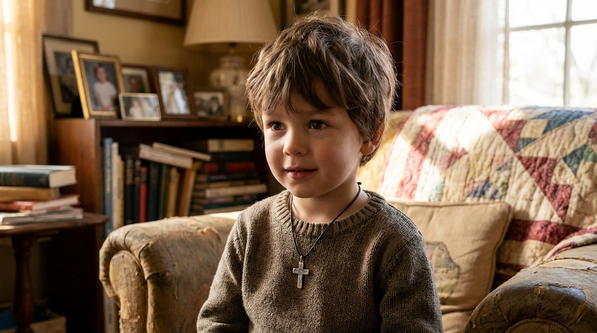 Сын Тёма вернулся от бабушки с крестиком на шее. Маленький, серебряный, на верёвочке.