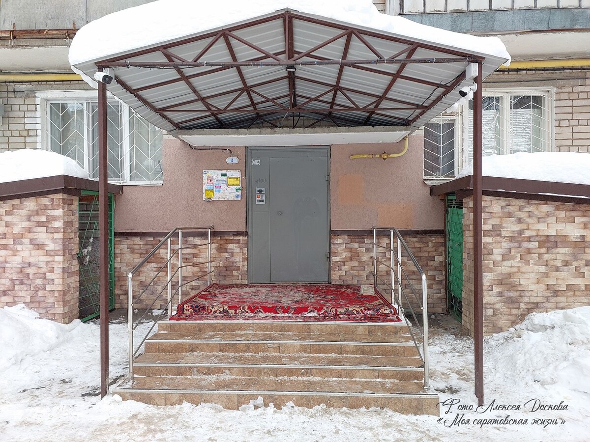 Интересный был сегодня дней. Ходил по делам, приходилось заходить во дворы, встречаться с разными людьми. А вы знали, что в доме № 91/101 по улице Рахова входы в подъезды украшают ковры? Вот я тоже не знал. Осенью прошлого года их там не было. Видимо, подготовились к зиме. С другой стороны, в прошлую зиму их там не было... Сам по себе интересный двор. Через него можно не только выйти к городскому шахматному клубу, но и на Советскую ближе к Пугачевской (ныне - Пугачева). Старинные красивые домики внутри расположены, а в теплое время года можно наблюдать красивые цветы у подъездов соседних домов и различные рукотворные украшения двора. Осенью в этот двор всегда приезжают грузовые машины и продают картошку ведрами и мешками. К сожалению, двор взяли в железные рукавицы забор с домофоном, но сейчас из-за снега, калитки открыты. Так что рекомендую воспользоваться этим и прогуляться там. А я, покинув интересный двор, отправился на встречу в СГАУ на Советскую. Нужно было найти кабинет, в котор