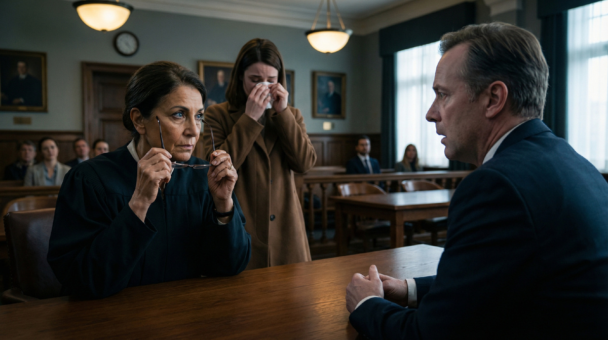 Дверь кабинета открылась. Вышла судья — уже без мантии. Обычная женщина в сером свитере, с усталыми глазами.