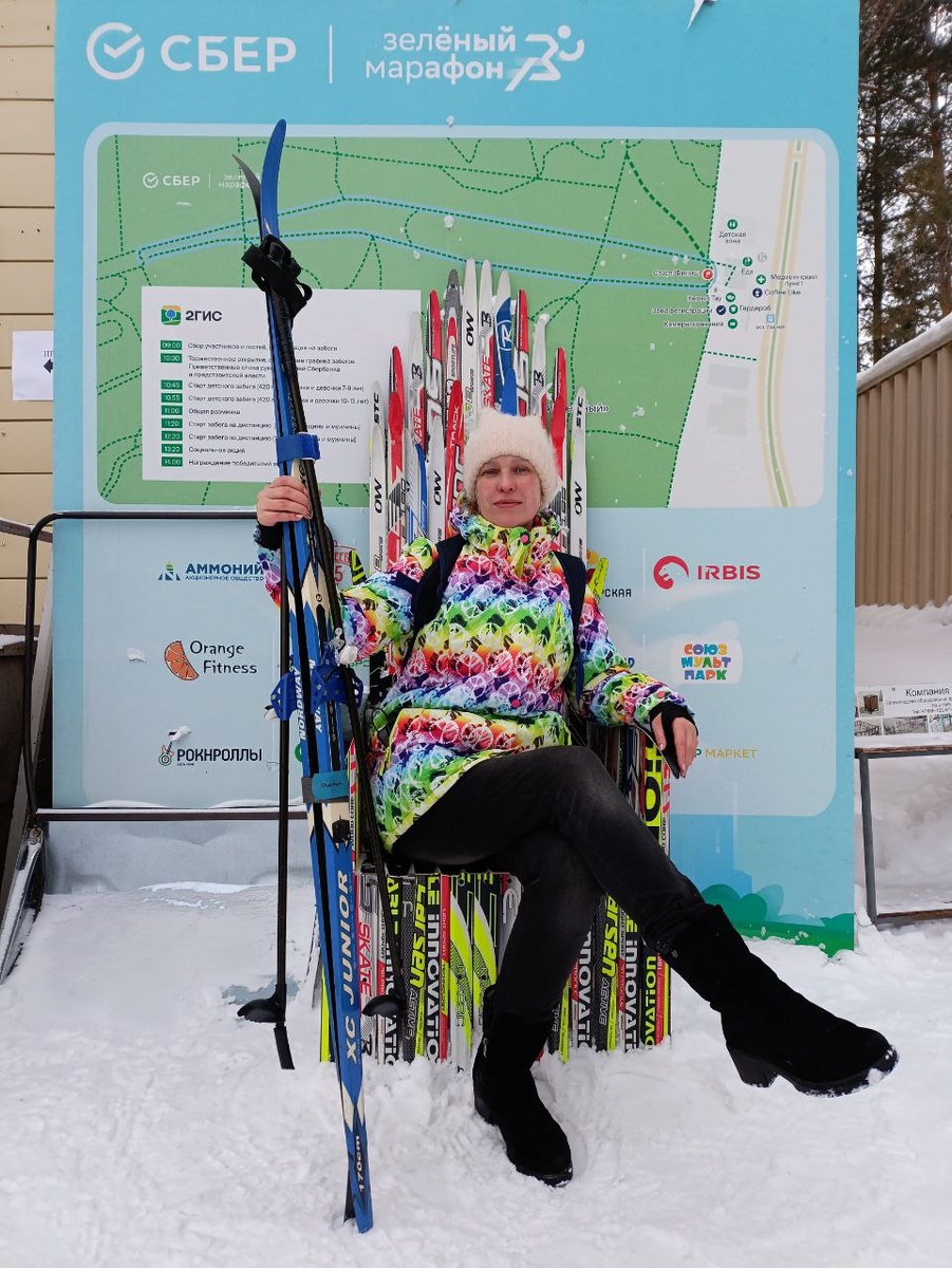 Оттуда еду на точку сбора, где подруга планировала взять лыжи в прокат. Переодеваю ботинки и важно жду, когда она выйдет. И вот мы готовы ехать — и тут я понимаю, что на моей лыже сломано крепление. Фиаско!