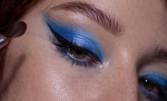 - Нанесите голубые сатиновые тени на нижнее веко