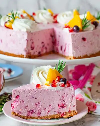 Праздничный чизкейк, который станет главным украшением любого торжества. Простой клюквенно-апельсиновый чизкейк без выпечки получается нежным, с фруктовыми нотками и очень вкусным. Он готовится на основе из простых крекеров, с домашним клюквенным соусом и сливочным сыром. После охлаждения торт украшается взбитыми сливками и праздничными веточками свежего розмарина. Этот потрясающий праздничный чизкейк мгновенно станет хитом. Вот рецепт чизкейка с клюквой и апельсином. Продукты необходимыедля приготовления: