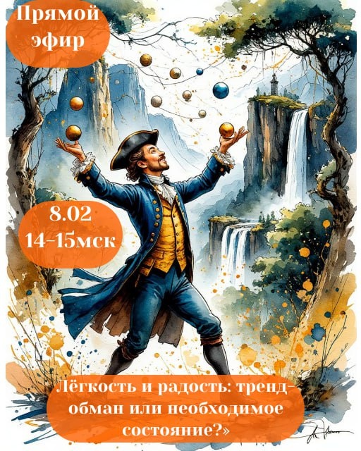 ? Запись эфира :здесь — честный разговор + 4 способа вернуть себе состояние потока без магии и платежей. ⭐️ Что, если «быть лёгким и радостным» — это не товар из Instagram, а навык, который можно настроить? Как настройка гитары — нужны лишь знание ладов и чуткие пальцы. Тем более, что она не берется ниоткуда, она всегда есть внутри тебя, от природы. ⭐️ Приглашаю на откровенный эфир-настройку. Мы: 💎 Развенчаем 3 мифа о лёгкости, которые мешают ей прижиться в твоей жизни. 💎 Найдём её «адрес» в теле (да, у неё есть точный адрес!). 💎 Поиграем в мячики с Вселенной — я покажу наглядно, как «провал» превратить в элемент игры. 💎 Разберём 4 рабочих «ключа», которые помогают возвращаться в ресурсное состояние за минуты. ⭐️ Это не мотивационный спич. Это — инструкция по эксплуатации твоего врождённого состояния потока. Без эзотерики, без «просто верь в себя». ⭐️ Приходи, если: 💎 Чувствуешь, что радость стала редким гостем. 💎 Хочешь понять механику, а не получить лозунг. 💎 Готова