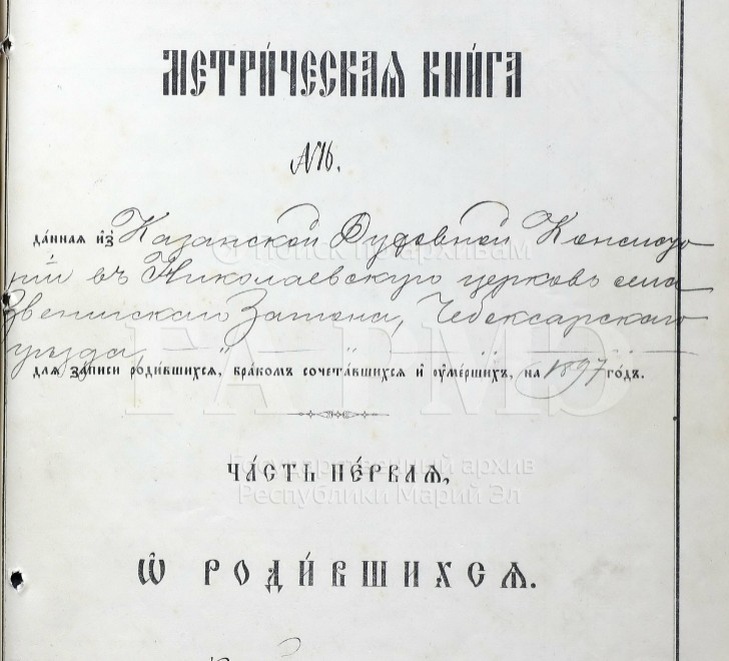 Метрические книги Никольской церкви села Звенигово для записи родившихся, бракосочетавшихся, умерших. 1 января 1889 — 31 декабря 1901 ГА Республики Марий Эл (ГАРМЭ), фонд № 305, опись № 2, дело № 887, стр. 115 скан. Метрическая книга, данная из Казанской духовной консистории в Николаевскую церковь села Звениговского затона Чебоксарского уезда для записи родившихся, браком сочетавшихся и умерших на 1897 год. Часть первая. О родившихся. Стр. 117 скан. Февраль. № 4. 17 числа родилась. 19 числа крещена. Мариамна. Родители: Казанской губернии Чебоксарского уезда Мариинского посада 2-й гильдии купец Арсений Трофимов Зинин и законная жена его Евдокия Григорьева, оба православные. Восприемники: Мариинского посада купеческий сын Иван Григорьев Бандин и купеческая дочь девица Мария Григорьева Бандина. Таинство крещения совершил священник Алексей Измайлов. Псаломщик Николай Греков. https://yandex.ru/archive/catalog/31c790be-a2e5-40b1-bcab-ca9bec3ee0ab/117