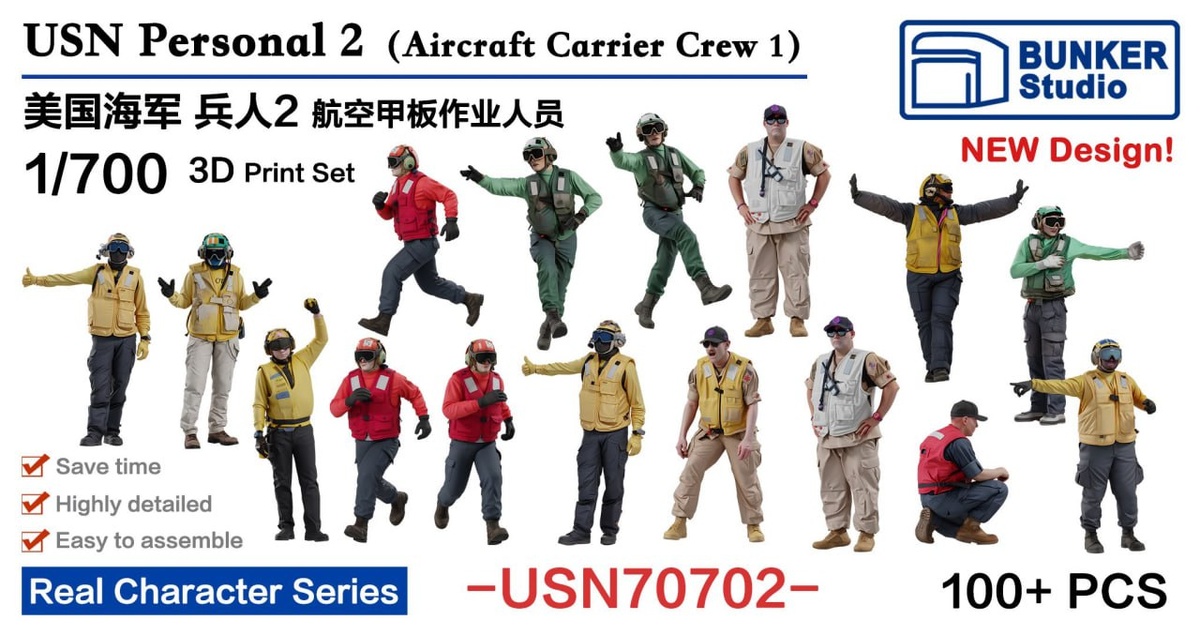 Bunker Studio анонсировали наборы фигурок палубного персонала американских авианосцев в 1/700, 1/350 и 1/200 масштабах.