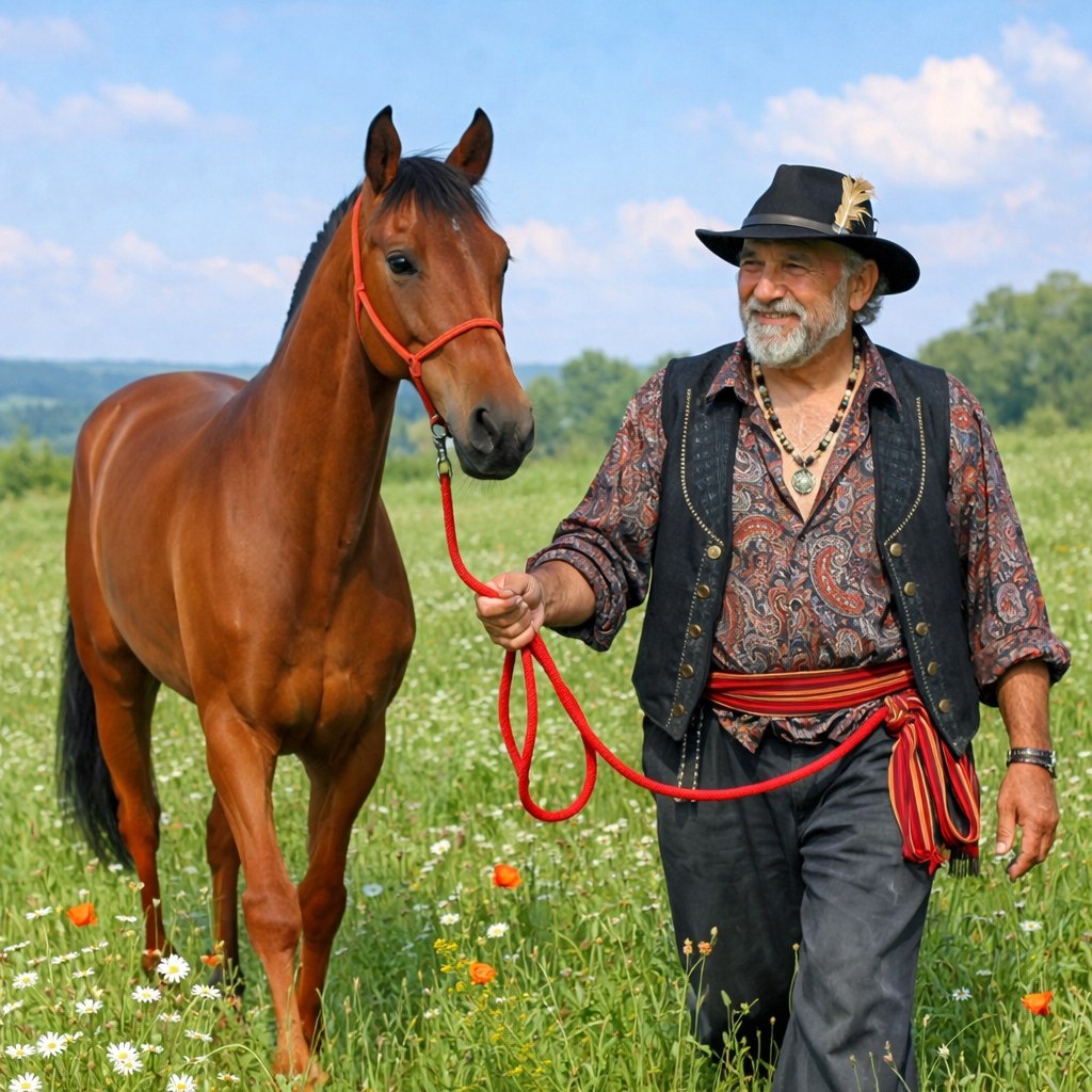Потом цыган этот верёвку как недоуздок накинул на него накинул и повёл жеребца к нам. И довёл, просто за гриву придерживая, как собственную собаку по двору, а рыжий даже не пытался убежать, шёл с ним как приклеенный.