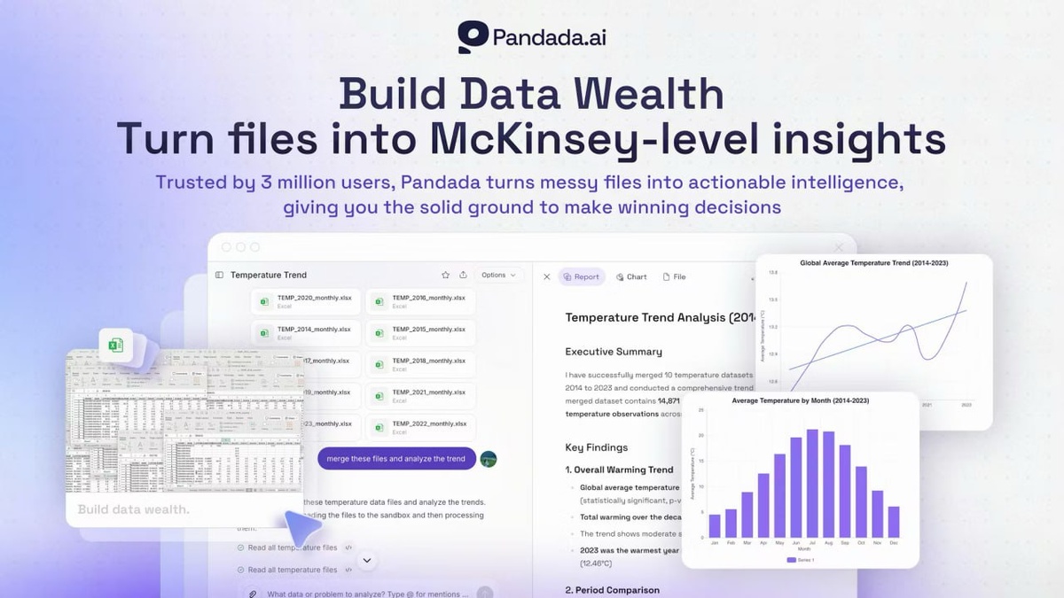 Pandada дает возможность как нетехническим специалистам, так и аналитикам данных создавать богатый массив данных. Выйдите за рамки простого «общения» с данными — Pandada превращает неструктурированные CSV-файлы, PDF-файлы, файлы Excel и даже фотографии в загружаемые и доступные для обмена отчеты и презентации уровня McKinsey — чтобы вы могли принимать более обоснованные решения, опираясь на данные. Решаемая проблема: 80% своего времени я тратил на очистку запутанных электронных таблиц и обработку цифр, чтобы мой менеджер проектов мог принимать более обоснованные решения по продукту. Решение: механизм «Data Wealth» Улучшение качества данных: Pandada очищает и структурирует «мусорные контейнеры» из файлов — отсканированные PDF-файлы, скриншоты или неряшливые таблицы Excel или CSV-файлы. Более качественные вопросы: Pandada уточняет ваши общие вопросы и превращает их в вопросы экспертного уровня, позволяющие получить ключевую информацию, которую вы ищете. Лучшие ответы: Pandada генери