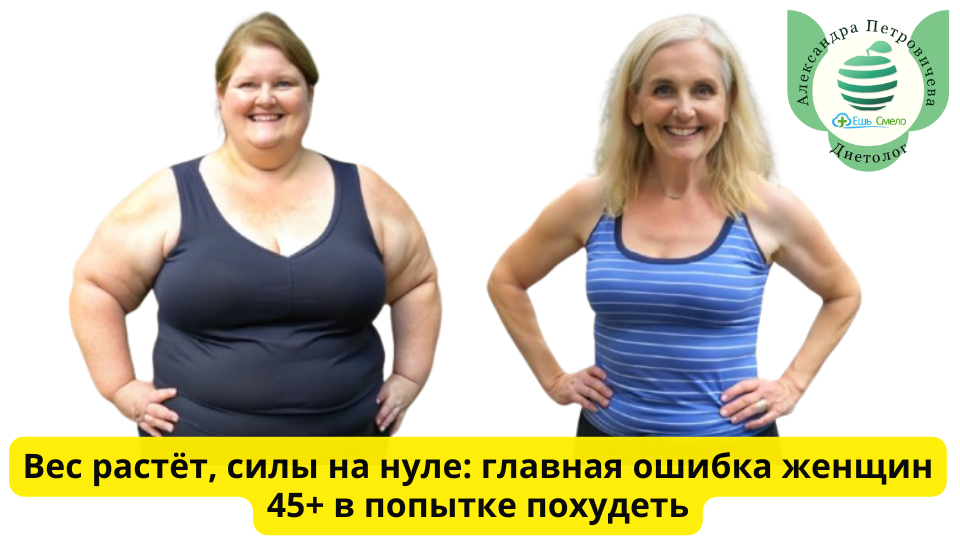 Вчера мы с вами в комментариях обсуждали, как трудно бывает сдвинуть вес с мёртвой точки. И поток сообщений от женщин 45+ был самым горьким и искренним: «Александра, я почти ничего не ем, а вес растёт», «Силы нет, настроения нет, талия исчезла, а я сама не своя».