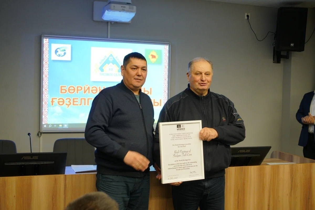Директор заповедника «Шульган-Таш» Михаил Косарев получил сертификат о включении объекта «Наскальная живопись пещеры Шульган-Таш» в список Всемирного наследия ЮНЕСКО. «Этот документ символизирует победу Башкортостана, укрепление международного авторитета, в котором немаловажную роль сыграл и сам заповедник. Ведь не каждый день охраняемый нами объект становится частью всемирного культурного наследия», — отметили в пресс-службе заповедника. Фото: пресс-служба заповедника «Шульган-Таш».