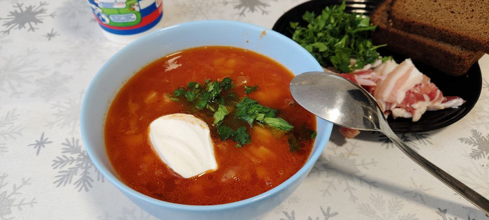 Он же Черниговский борщ! Да, есть такой вариант борща. Да, он именно так готовится. Да, без уксуса! Да, яблоки дают кислинку именно для этого они там, вместо укуса. Да, с капустой. Да, с кабачком. Да, с фасолью. Странникам плоской земли настоящего варианта борща, мой пламенный привет! Делаю! Сразу предупреждаю, это не быстро и не очень просто! У меня рецепты проще обычно. Но тут решил заморочиться. Но это очень вкусно! Ингредиенты: На 5 литров борща: Говядина с косточкой – 800 г Картофель – 400 г Капуста белокочанная – 400 г Свекла – 400 г Кабачок – 400 г Фасоль белая консервированная - 1 банка 300г Помидоры – 400 г Томатная паста –70г Морковь – 1 шт. Лук репчатый – 100 г Яблоко свежее кислое – 1-2 шт. Масло растительное – 100 г + сливочное 100 г Зелень петрушки - 1 пучок Лавровый лист – 2 шт. Соль – по вкусу Перец горошком душистый – 5-6 шт. Перец свежемолотый – по вкусу. Коренья (пастернак, петрушка, сельдерей, морковь) для бульона. Мясо промываю заливаю холодной водой, солю и ставлю